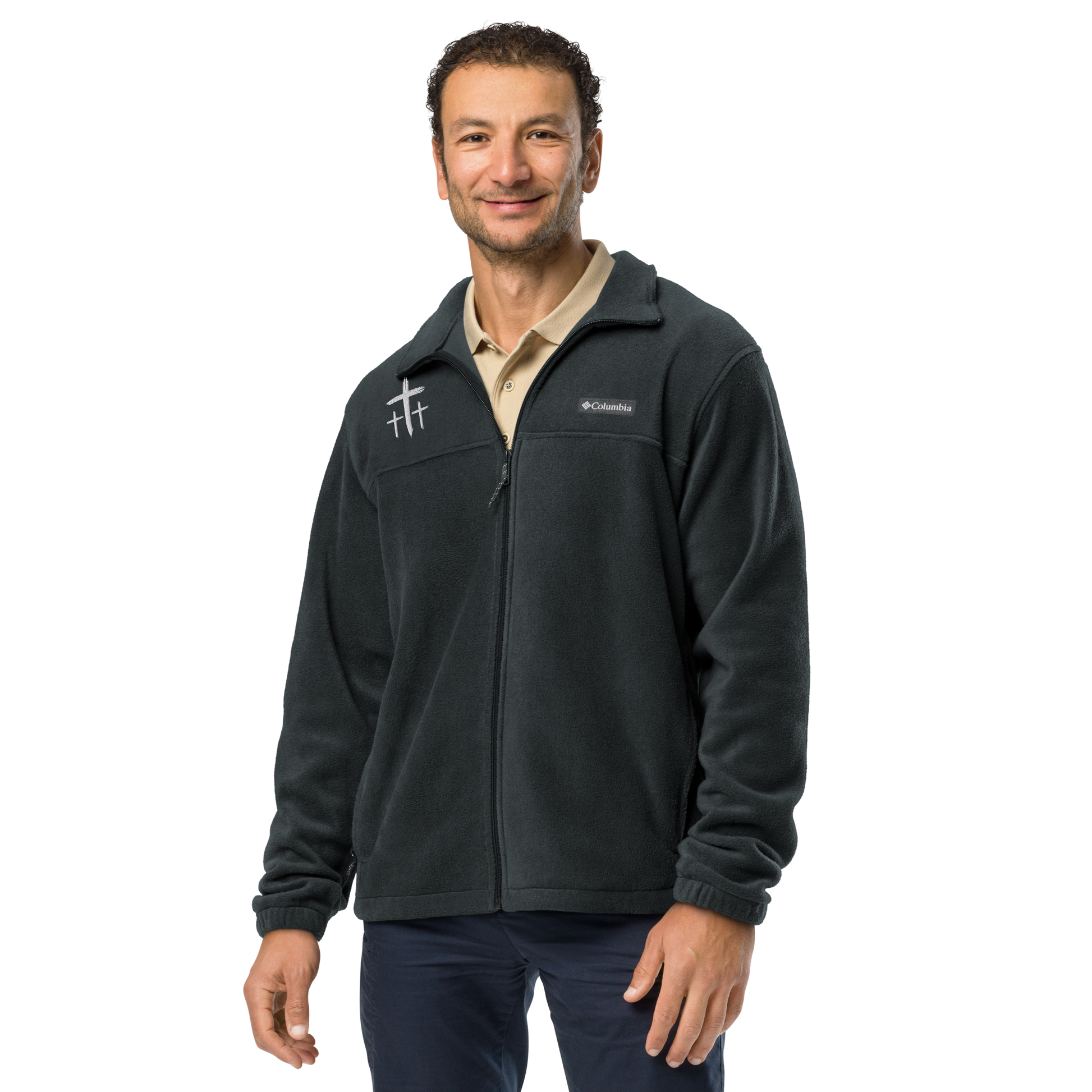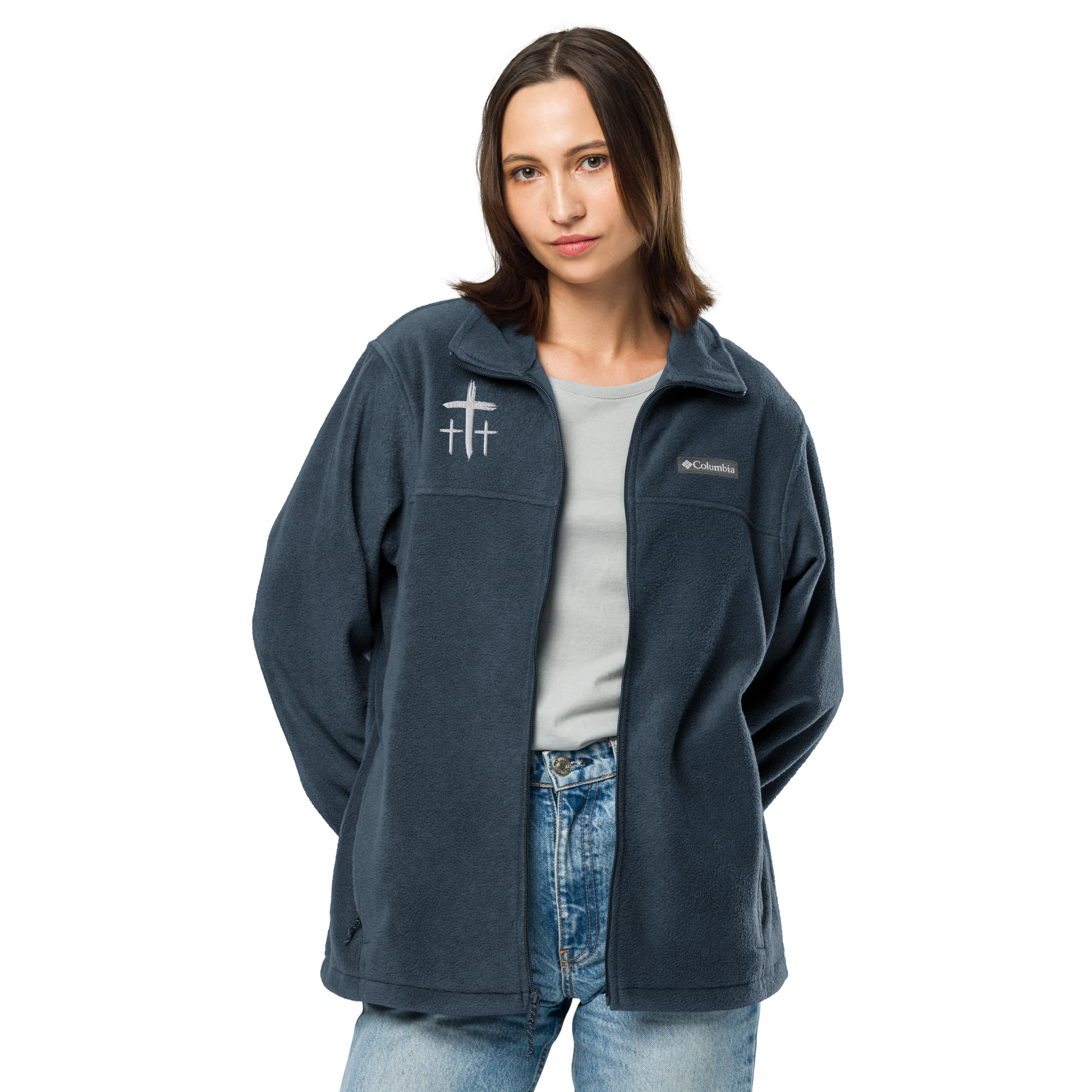 An Angel Feathers Original - Three Crosses - Embroidered Columbia fleece jacket
