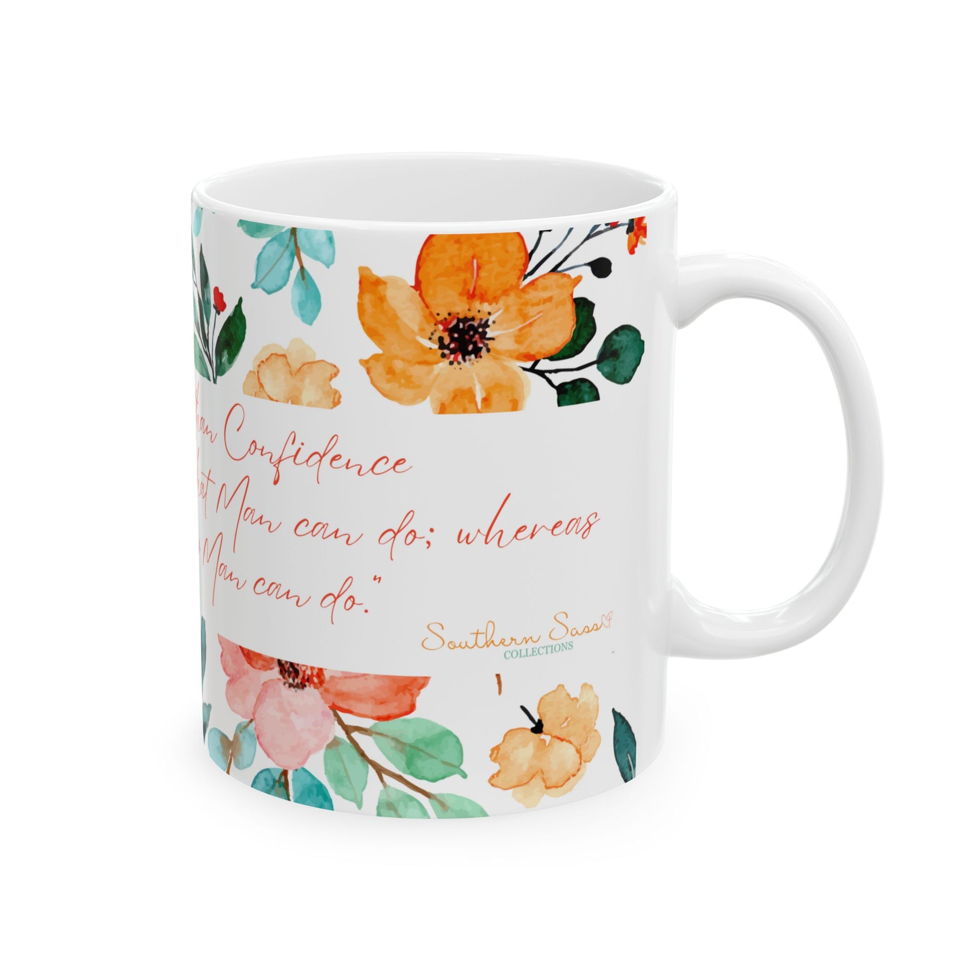 Cozy up with a nice cuppa tea with this customized ceramic coffee mug. it was personalized with you in mind, that "aaahhh!" moment even better. The quote is an original quote created within our Southern Sass Collection. It’s BPA and Lead-free, microwave & dishwasher-safe, and made of white, durable ceramic in 11-ounce size. Thanks to the advanced printing tech, your designs come to life with incredibly vivid colors – the perfect gift for coffee, tea, and chocolate lovers. This unique quote was created as a reminder that we all need to believe, because it is so true in every situation.
